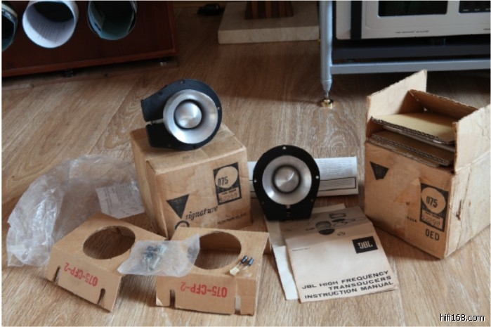 4。jbl075高音,这么多年的东西带有包装的我还真没见过,在美国的卖家怎么都不外国外,这还是托坛上h大师买下,又托天津的y老师从美国带回(在这里实在对不住以上两位了,无奈是8欧的,在16偶系统上感觉别扭),本钱就1000零几美金。价:6500