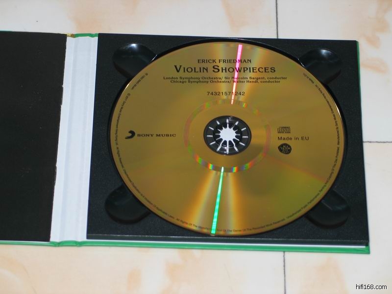 《VIOLIN SHOWPIECES》可以说是每个发烧友门都应该人手一张的发烧天碟了,碟中的演奏家弗里德曼乃是小提琴大师海飞兹的高徒,而且得到海飞兹的真传,弗里德曼的弓法同海飞兹十分相近,对小提琴中音区的演奏技巧甚有特色,运弓力度适宜,音色扎实饱满,尤其是双弦拉得特好,把位准确,韵律和谐,在当代提琴家中特树一帜。负责此碟录音的是音响发烧友十分熟悉的美国唱片制作专家莱顿,在1962至1963年期间的制作。这张CD的传真度极高,现场感及空气感好,堂音丰富,在《茨冈 》中表现最为突出。母带的嘶声清晰可闻,需将电平加大聆听,此刻才明白何谓小提琴的音色是如此的美丽。 虽说60年代的录音技术不及现今先进,但为何有这样美妙的录音效果呢?这正是莱顿的过人之处,一是他认真细致、一丝不荀的负责精神;二是他具有高度的音乐艺术素养,与小提琴演奏家、乐队、指挥都心息相通;三是他具有出色的驾驭器材的能力和现场控制能力。在高档系统中聆听该碟发现当中的信息量之大令人吃惊,该碟可以称得上是小提琴录音典范中的典范,即使再过几十年也难以取代。