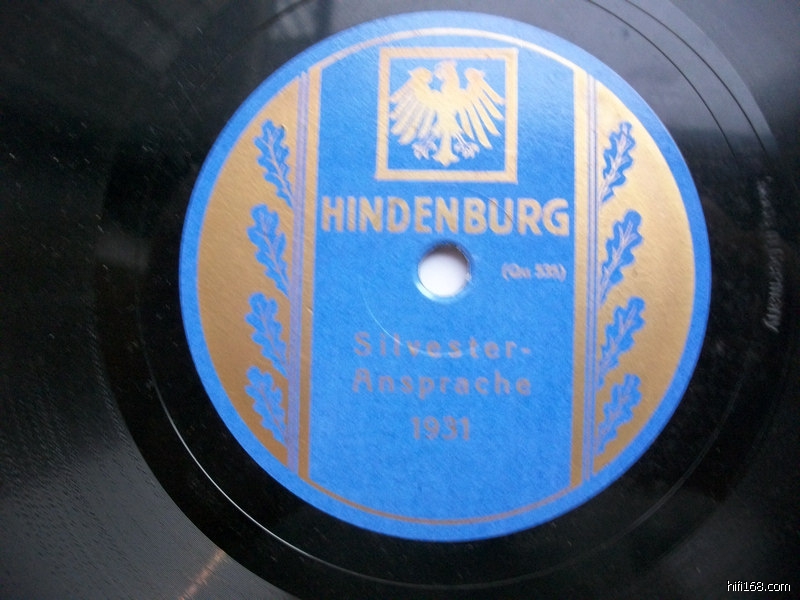 顺便,老板送我一张他自己都不知道是啥的唱片,说是和《丽丽玛莲》一样,说德语,呵呵,我回家一听:果然说德语 - 是1931年德国总统维登堡的新年讲话,那一年希特勒被任命为德国总理,纳粹正式上台。