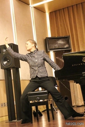 陈总再向大家介绍"德恒之声"的航母脚垫在LP机器下面!播放是一张收藏的LP片源,卡拉扬指挥“蓝色多瑙河“圆舞曲。有脚垫与无脚垫素质完全不一样,用上后音乐的出现是很有思维,听到号声出现,一位听者激动地说: 没脚垫号声的出现,“迷雾“已经没了,垫钉后迷雾几乎是在慢慢散去。这位朋友对我说:这台LP机的老板,听到你的钉脚垫在他机下,出现的音声要向你恭拜。呵呵,当然不是这样说,机的本身素养很高,钉脚则是提供了一个稳定的平台而己!脚垫本身不会发声!对于整个曲子,垫钉后的节奏感等等不多介绍了。有兴趣的朋友可以去陈总店听听!