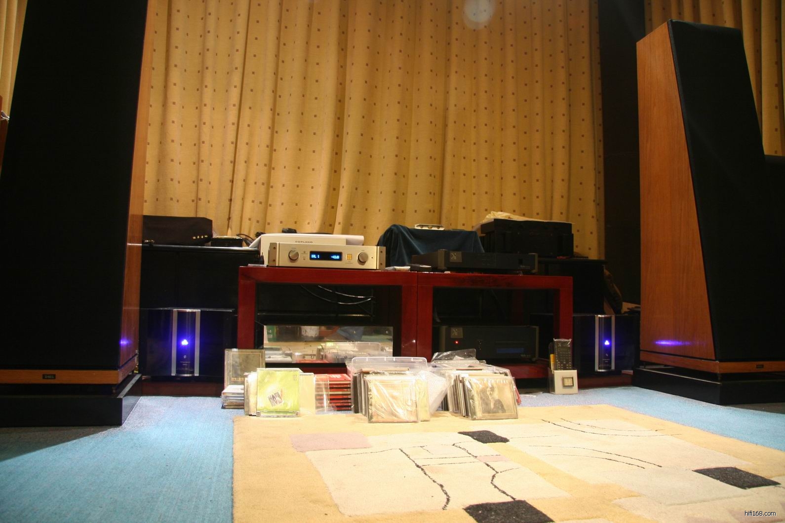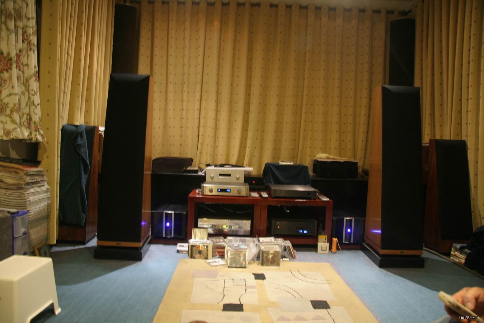 现在的系统由统一美国品牌:Wadia (怀念) CD转盘、解码器,Threshold T2前级,KRELL 350Mcx大功率单声道晶体管后级,Thiel(超奥) CS7落地音箱所组成。在这里表现出监听的风格,张力、密度、平衡感十分不错,人声亲切自然,交响乐曲交待得井井有条,有气势。平哥也感觉到在现在25平方米左右的听音环境里还是不能充分发挥CS7 威力,已经在新屋那边预建一个比现在大很多的环境,期待以后更好的发挥。