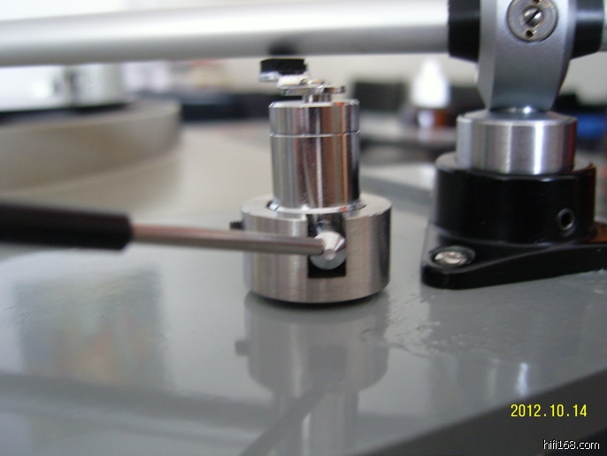 关于这台EMT950的唱臂方面,细心的烧友会发现,在原来的EMT 929唱臂上,我也动了手脚,加装了上下指点的平衡受力重锤,就是黑色的那个.