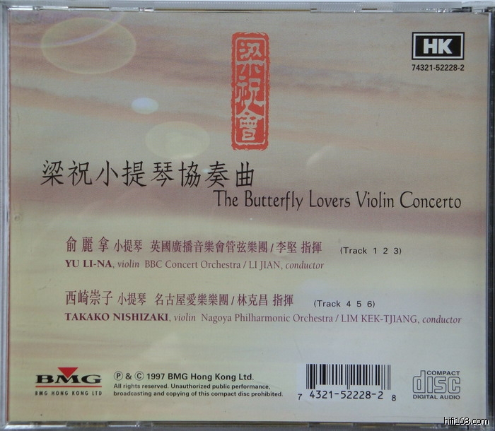 .俞丽拿演奏,英国广播音乐会管弦乐团协奏,李坚指挥,听《梁祝》的人几乎都听过她。俞丽拿的演奏热情奔放、感情充沛、投入,小提琴音色清丽,深刻细腻,优美流畅,突出忧郁悲怆的戏剧色彩。
