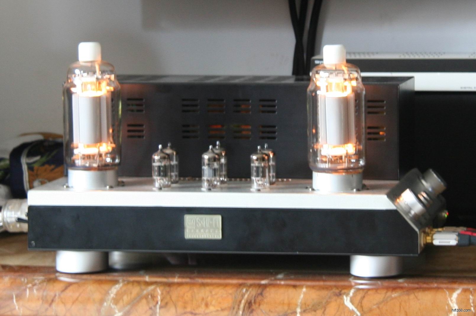 大功率直热四极功率胆管813合并机,所有跟机胆管已换,放大推动的细胆已换成德律风根和大盾,大胆813是日本的石墨屏,标准接法功率输出超过50W8欧,推动灵敏度低音箱一样虎虎生威。
