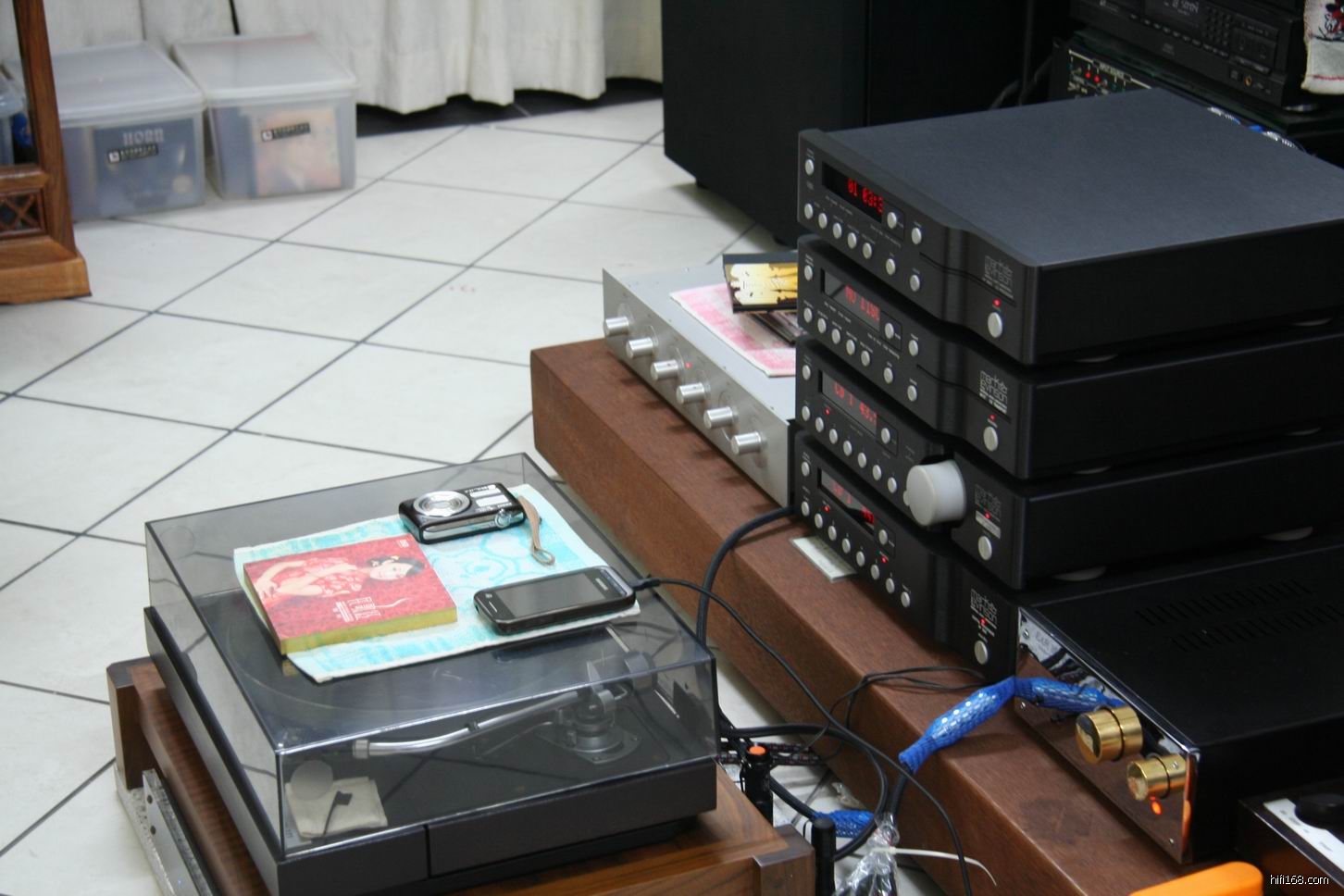 活动结束后江门和中山等一众烧友到访中山礼哥府第,交流当天的活动感受,再一次体会有46只喇叭的巨无霸音箱的威力。礼哥的器材已经报道过很多次,现不再重述,不过今次礼哥有样改进令我非常兴奋高兴,因为他新添置了一台质素非常好的英国EAR 88PB胆唱放,终于见到他的大系统出现胆的踪迹,是一个好的开始。