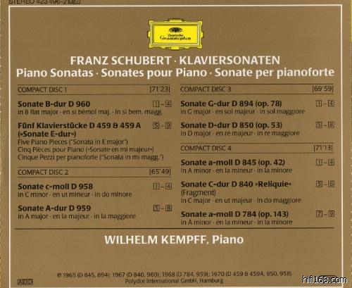 五、舒伯特的钢琴奏,和即兴曲 Op.90, D.899 和Op.142, D.935在小双张里出现,但是流浪者、即兴曲, D.946 和D604、D.915、Two Scherzi, D593 以及13 Variations on a Theme by Anselm Hüttenbrenner就真实绝版很久了。