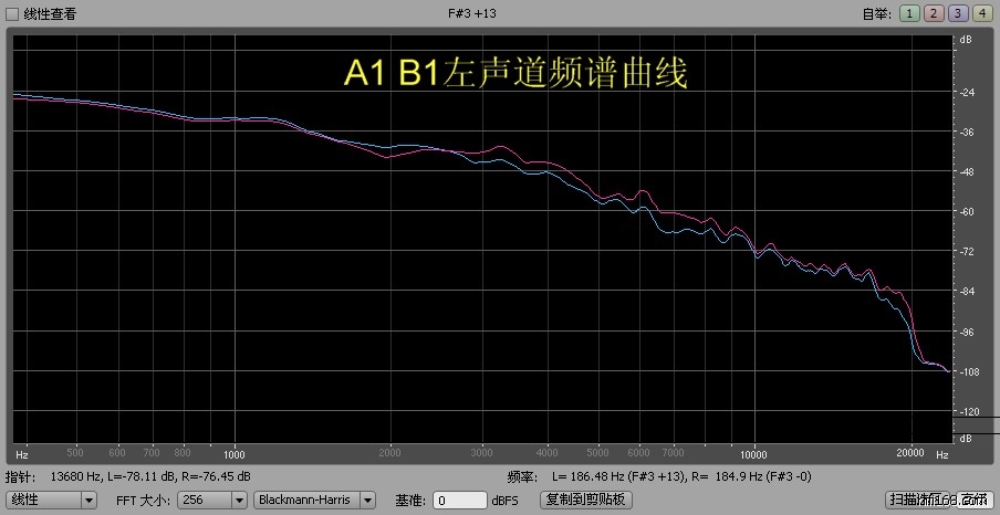 原帖由 混混 于 2012-6-17 11:47:00 发表 原帖由 开心果 于 2012-6-17 11:30:00 发表为了使听感和频谱曲线有个初步印象,使用A1和B1的左声道信号做了频铺分析。暂时不公布那条曲线是A1还是B1(友情提示,做了频谱分析的烧友,暂时也不要公布结果),让大家猜一下。曲线的差异貌似没有听感诧异大啊