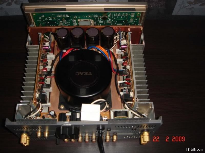 图中上部是TEAC当年500参考系列的合并机A-H500,别看是小机器,重量也有十足的7KG多,比我的NAIT5i要重。做工考究,面板是近1CM的铝板,旋钮全部是金属材质,内部更是了得,巨大的屏蔽环牛,双MONO对称功放板,每声道2对4个大晶体管,前级电路板被安排在机器底部和电源以及后级完全用金属隔板分离。难怪这个标称只有50W*2的小机器,有着非常大的能量,绝对不容小瞧。这机器在UK的2手市场价格非常不便宜,好在我这里实在无人识货,当年被我白菜价购入。