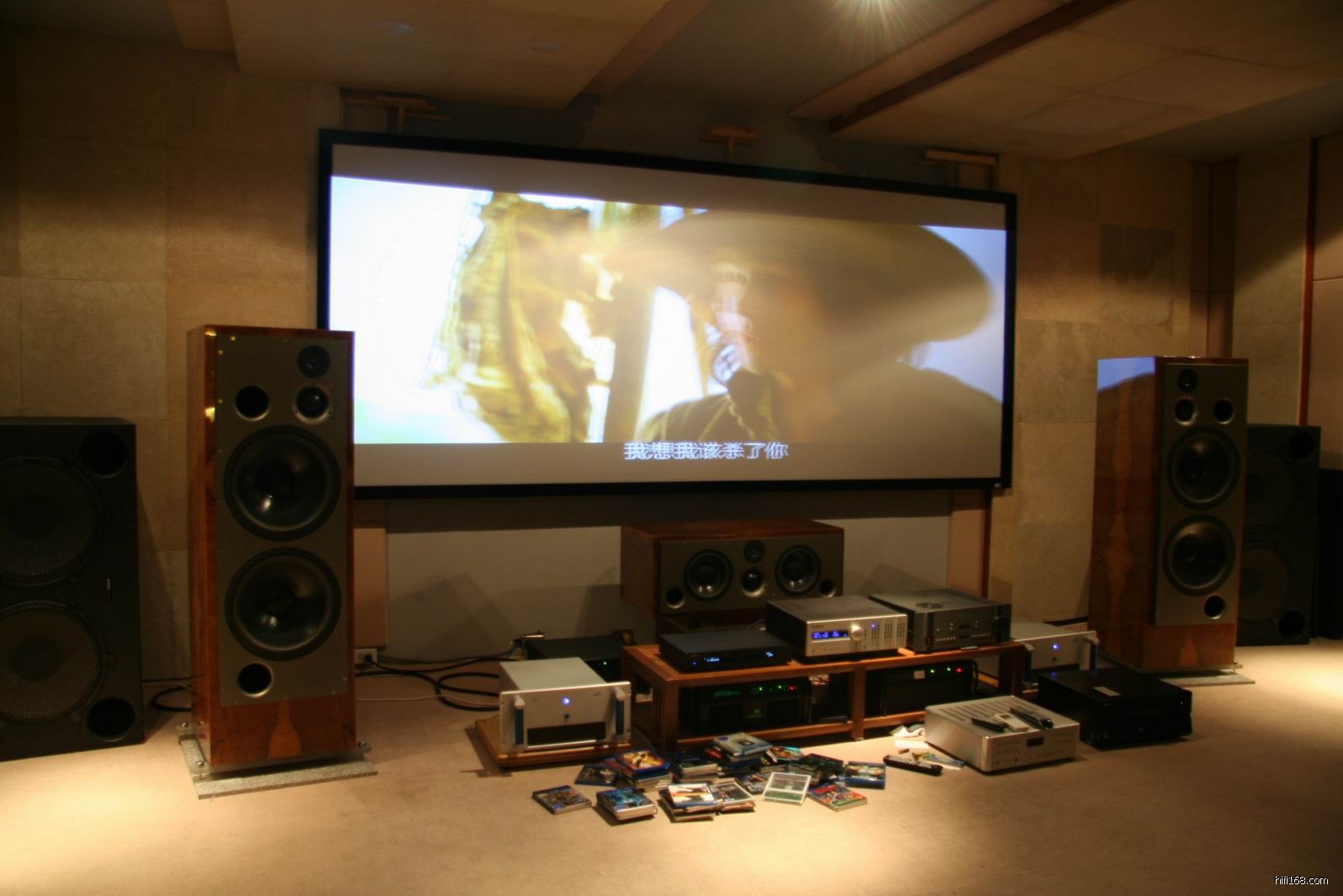 这是一间影院房间,播放爆棚震撼的电影,由全套JBL旗舰家庭影院扬声器系统演绎,身体的感受多于视觉的感受,不错的效果。