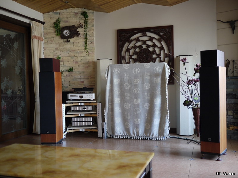 扩散器的组合,地上则是铺满了地毯。在这样的空间与摆位条件下,用了许多综合扩大机