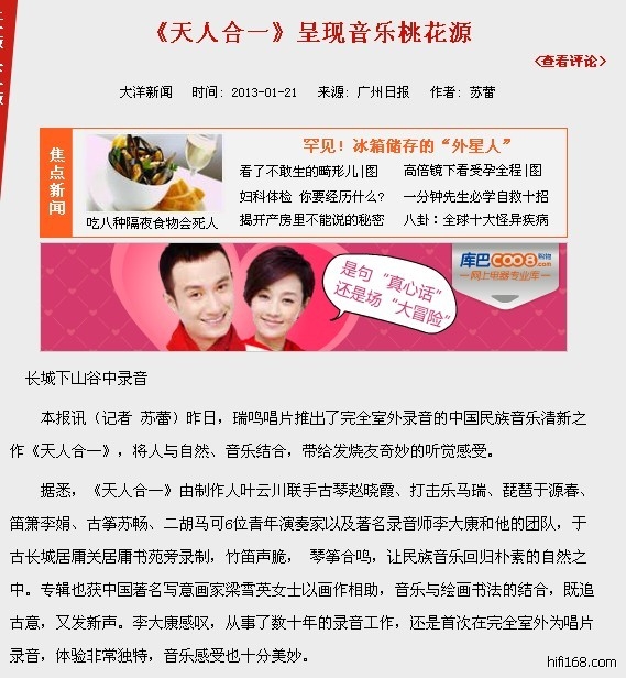 《天人合一》呈现音乐桃花源:1月21日《广州日报》B3版见报