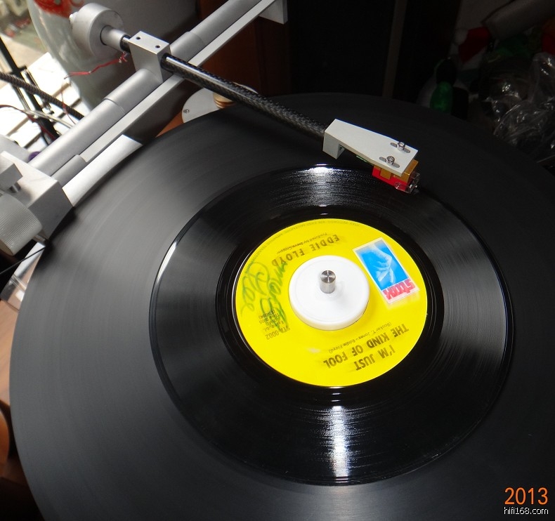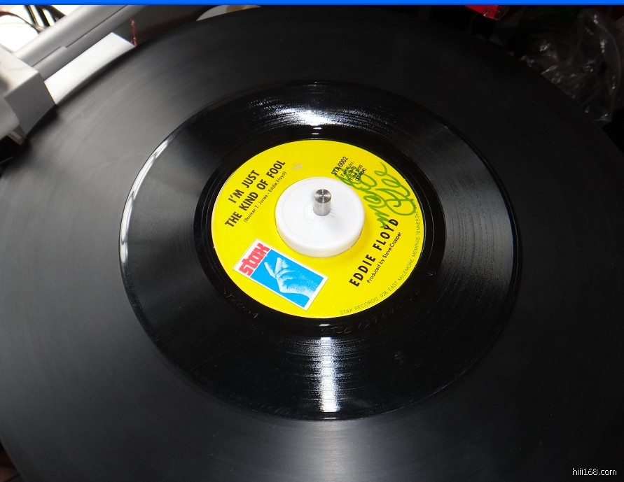 手头没有45转33转卡口的转换配件,只好找现成的圆形物体代替!
