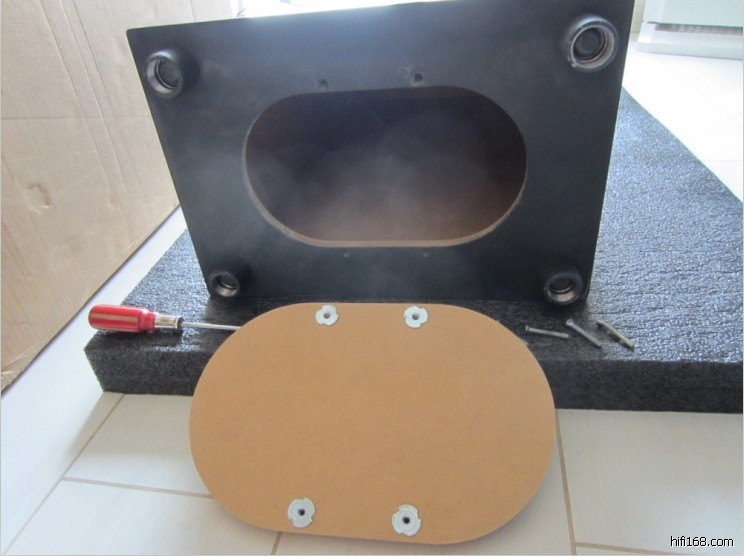 需将脚架底座打开,用原厂附送的内六角螺丝固定书架箱体(2013/1/31 10:06:36 上传)