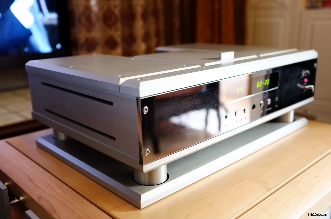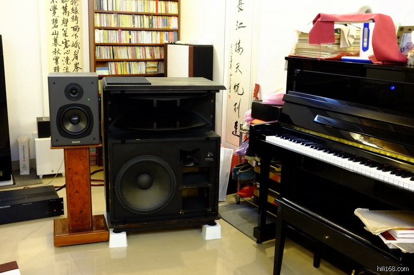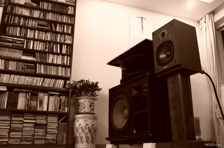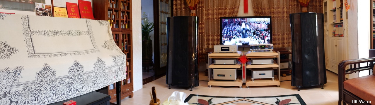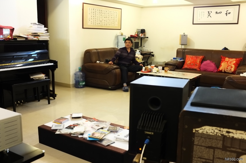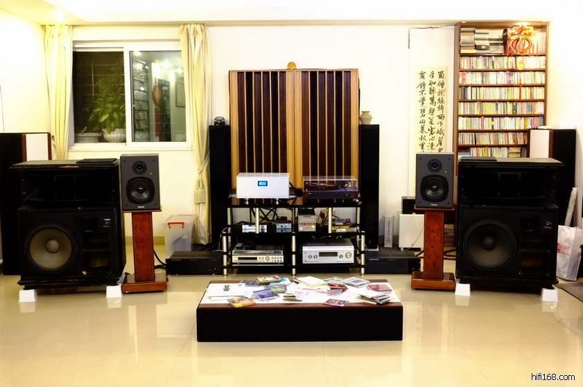 照片上的是他家里的,在工厂还开辟了一个50平大房间,那边就频繁进出器材,大规模试听。家里的就是欣赏的,不是试听的,就相对稳定。可是,CD机和前级,已经列入更换计划。