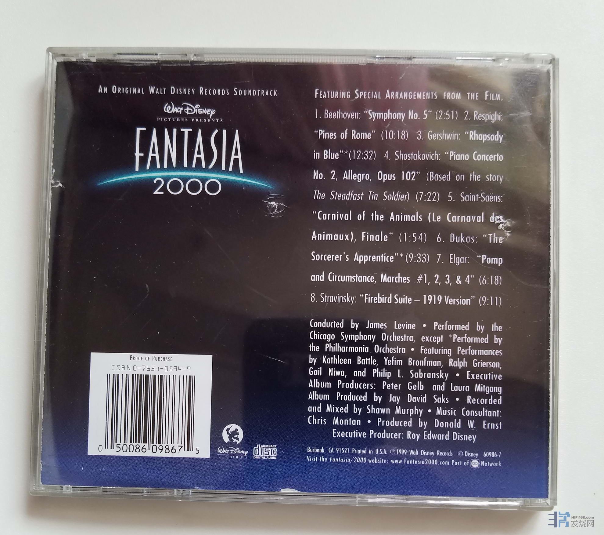 迪斯尼动画《幻想曲2000》(〈Fantasia 2000)原声大碟,反相录音,这张专辑里的“火鸟”组曲的演绎就比上一张《斯托可夫斯基(白头佬)指挥穆索尔斯基〈展览会之画〉等作品》好得多,两相对比可以切实感受到斯托可夫斯基(白头佬)为了追求所谓的音响效果,任意改动总谱,削弱了音乐原来的美感和表现力,正是因为这个原因,我对斯托可夫斯基(白头佬)的录音避而远之了。