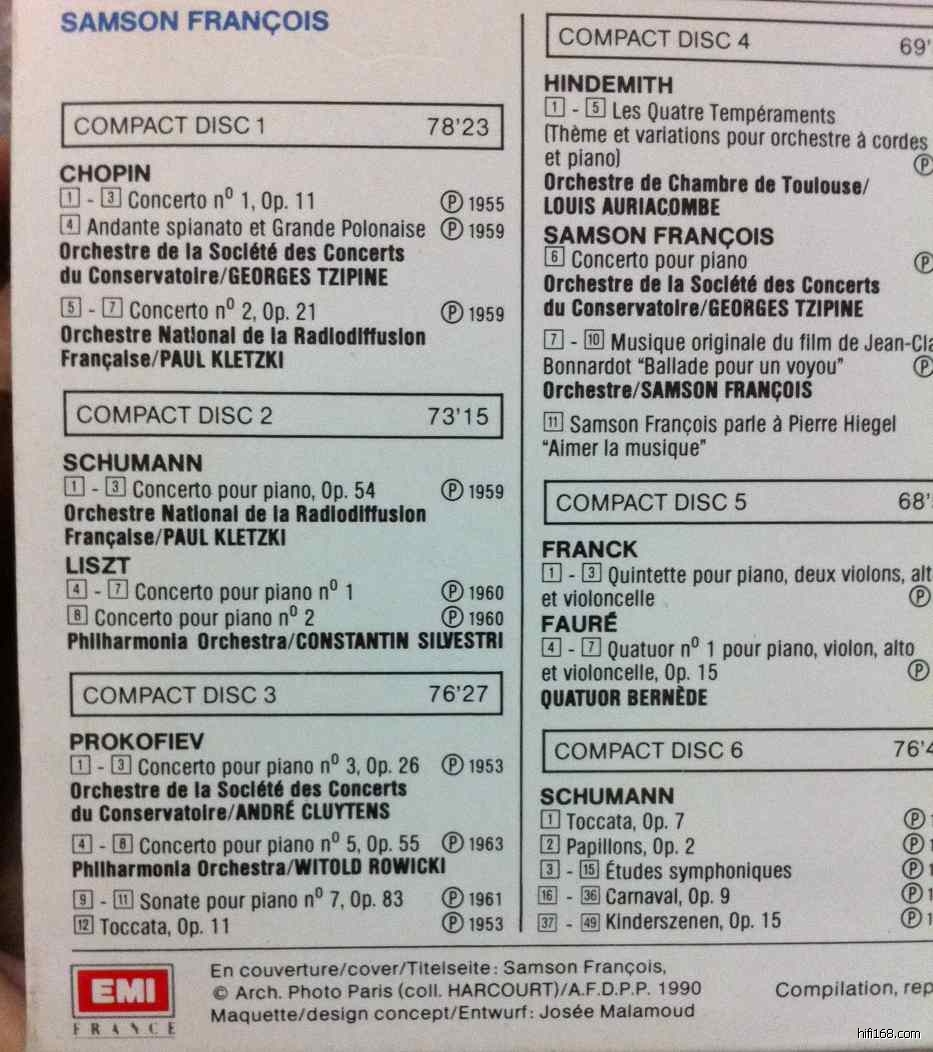 您好,请问francois的肖邦能否看看曲目,EMI再版的这个不是10张吗?请问差的是哪两张啊? [/quote]