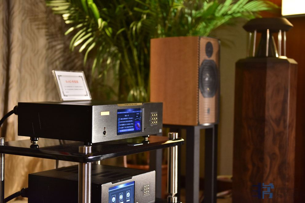 9i-AD乌金终极版+9i-908功放,驱动德国殿堂HRS130扬声器,现场条件限制,这套系统尽管没有完全发挥,但是优势依然突出:通透的空间感和清晰的层次,演绎民乐时那种空灵飘逸的美表现得颇为到位。
