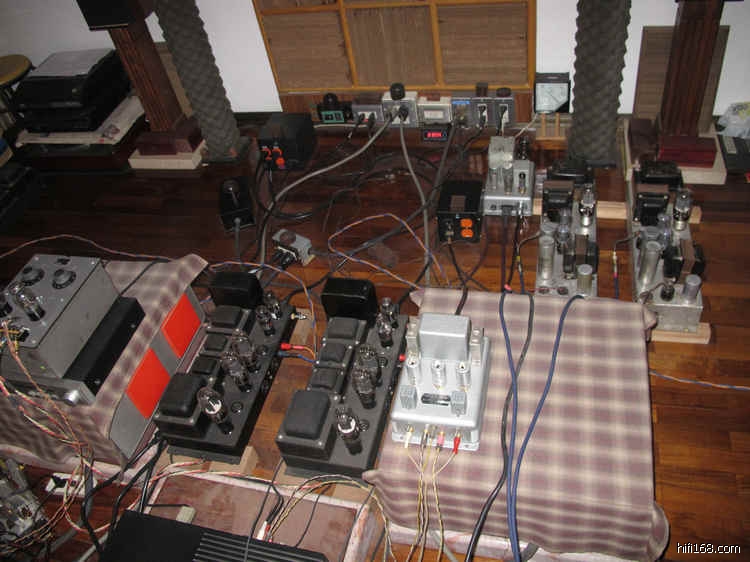 明哥备有四套功放推古董喇叭,一套2A3,一套录音室胆前后功放,一套西电前后级,一套供LP黑胶专用。