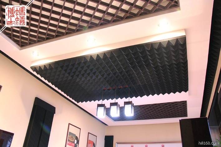 我的办公室面积是将近55平方米,纯粹商业空间,层高在4.2米以上,在装修时我就一分为二,用将近25平米来作为自己发烧听音(大约尺寸:6.8米X3.6米,空间装饰高度2.9米左右),剩下的30平米(空间装饰高度3.2米左右)作自己日常上班工作和发挥创作的空间。听音室弄在办公室,最大好处:器材工作可以发挥到极致,完美服役,随时可以聆听,而且声音想多大就可多大,完全由自己随性控制,简直可以不担心影响别人与否。