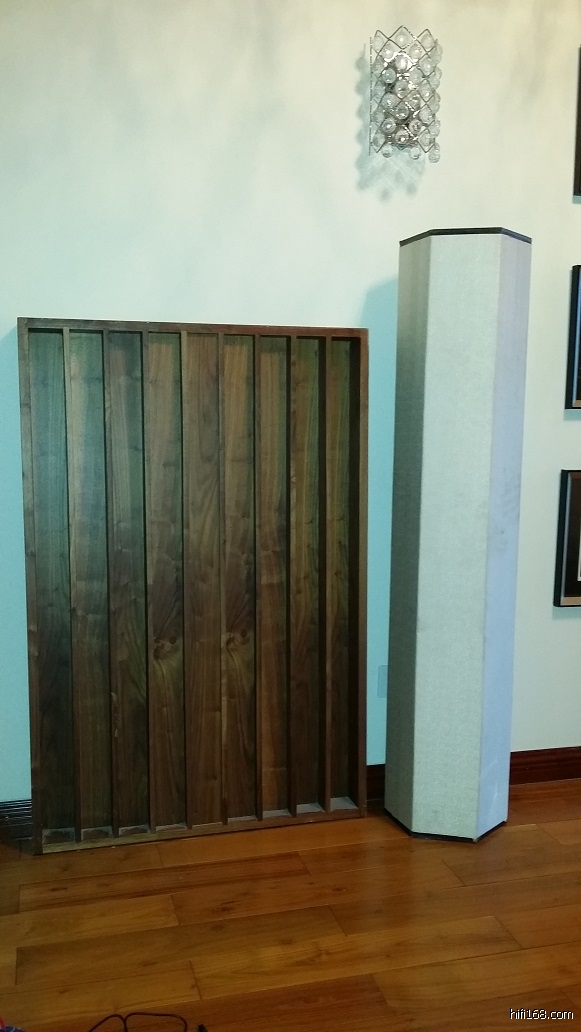 扩散板是爵士胡桃木,吸音柱是马奔。都是两块。