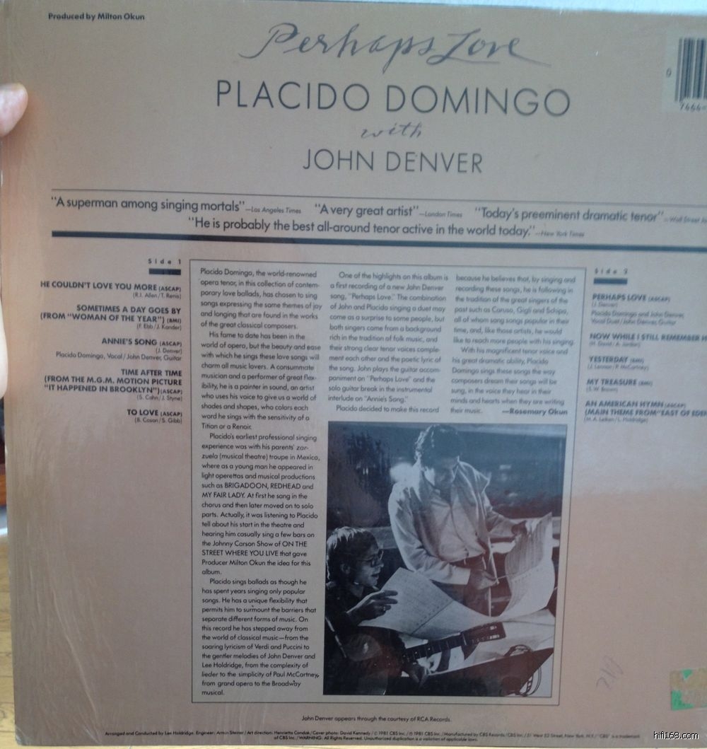 多明戈和约翰丹佛对唱PERHAPS LOVECBS公司 1981年出品
