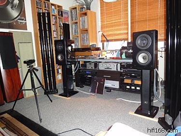 然而,即使我们调整好了低音的问题,织物球顶高音与中音低音的同轴组合,开始给了我们一个开阔的试听,而且音色也很美。但这种表现与大多数同类箱相比并无出色之处,难道它也只是一对普通音箱?这就需要通过试听调整去发现他的潜力。我从新摆位让扬声器与后壁保持11.7''的距离,并远离侧壁我发现对声音有很大的帮助。并准备煲机50小时,改善重播的效果。在这一位置的周围有我自制的环绕音响,以及中置和低音炮,还有一些线材。我不能够将两箱靠的太近,这会影响舞台的结像。在这一点上,我不得不产生新的想法。