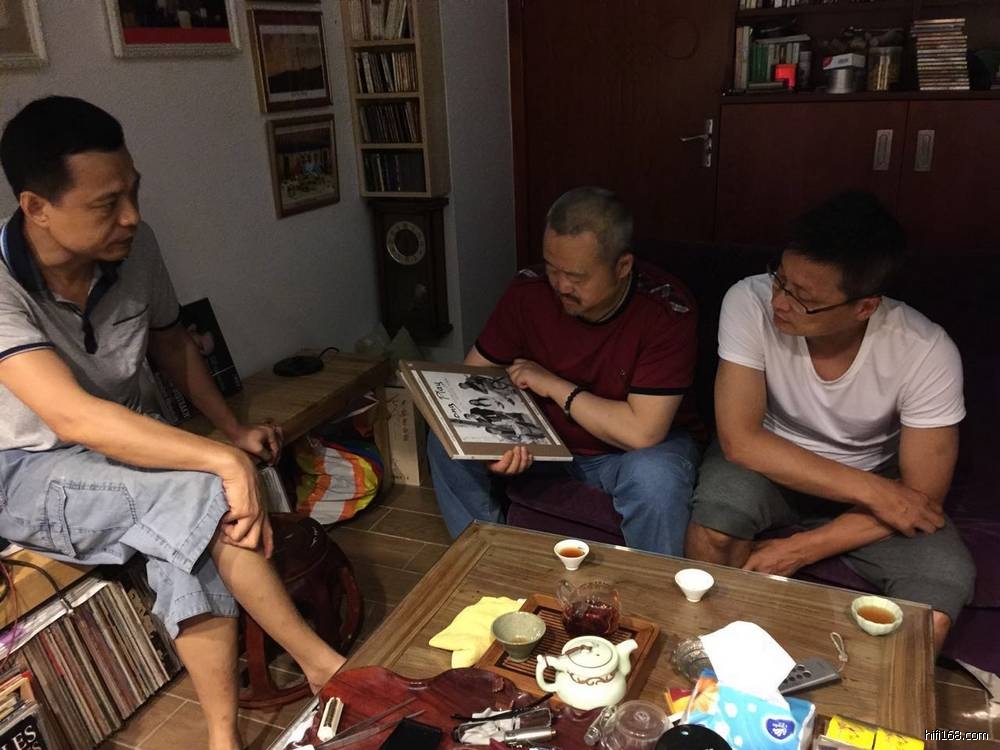 2015。5。28。晴。有朋自远方来,不亦乐乎。河北石家庄音乐发烧友沙尘瀑兄和王兄到访江门-中山。大家聚聚在叶会长家欣赏开盘带音乐及大师LP唱盘和黑胶唱片。然后在我家欣赏黑胶Lp及CD音乐。晚餐后大家兴忧未尽,我们江门三位,协同石家庄沙尘爆和王兄,几位飞上中山小榄欣赏中山礼哥的全套系统,马克音源加麦景图推法国极品大的乌托邦音箱,之后实地比较QL平衡电池唱放和EAR84P胆唱放大乌托邦大箱的实际质感效果。玩了一天一晚,这次的南北音响音乐发烧交流,相互学习,共同长知识,相当精彩。。。。。。