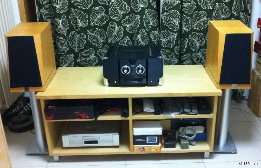 我没有买脚架(暂时用小脚架凑合着),本来准备订做一对与音箱底座尺寸一致的脚架,还没等订做,就开始对