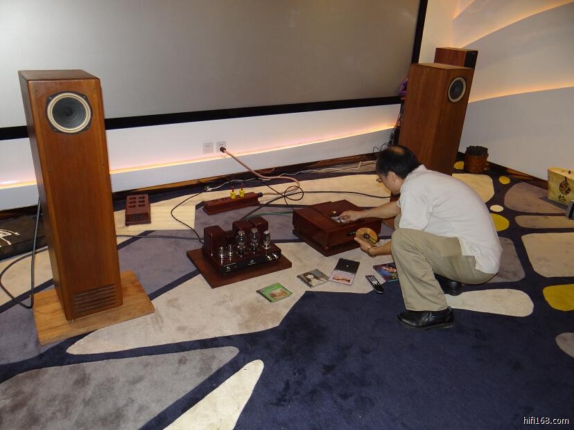 应几位烧友要求,将器材搬到珠海奥园影音室继续试听,用300B推全频落地箱,老王打碟继续玩正反相: