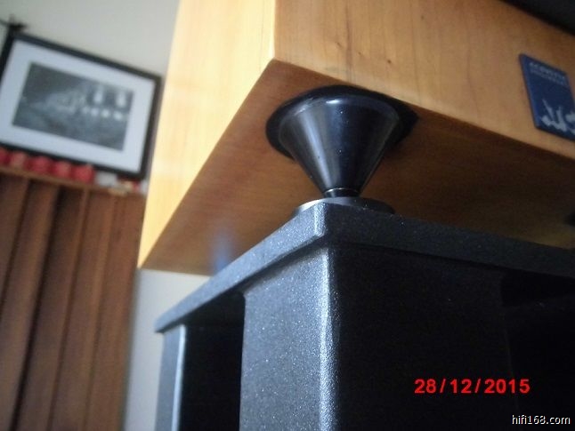 脚钉和脚垫不要使用双面胶固定。用了双面胶以后你在脚钉及脚垫上花的钱都打水漂了。对声音已经没有正面效果了,唯一一点就是让箱子稳固。但如果就是要这个功能,你直接把箱子放在脚架上,别碰到他,也已经十分稳固了