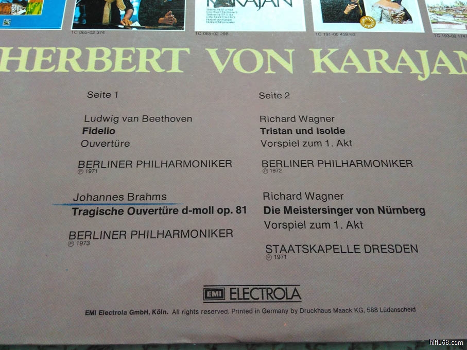 卡拉扬指挥贝多芬,瓦格纳,勃拉姆斯作品,德国版,封套NM,碟片NM,50元