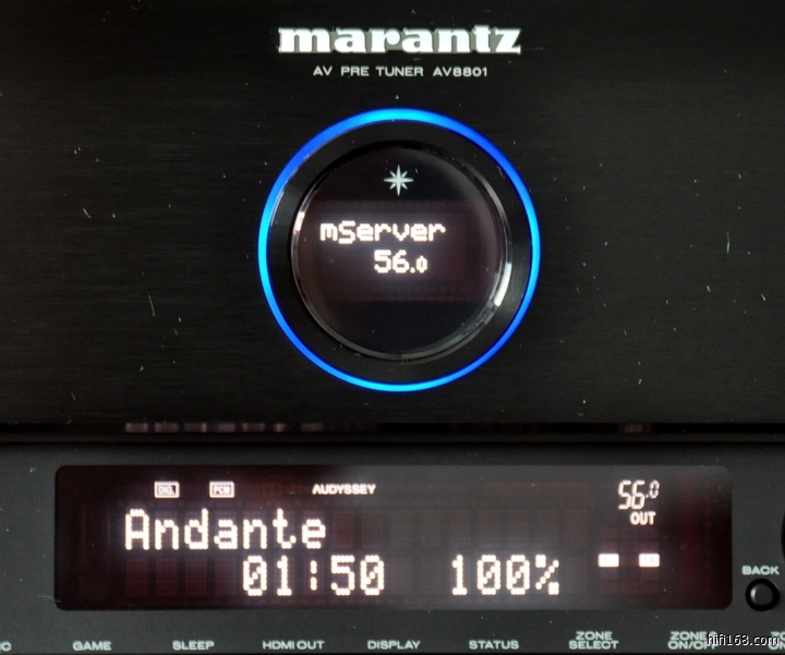 1. 听部分CD格式文件:计算机(网线)→ AV8801(Audyssey 模式 Analog Audio out 或 Balanced XLR pre out)→ PM-11S3 × 2(COMPLETE BI-AMP)→ TANNOY Turnberry GR。网线输出,AV8801的 Analog Audio out 与 Balanced XLR pre out,均可使用。值得一提的是,计算机网线输出模式,使用Windows的媒体流功能,音质偏向于模拟味道(还可以玩儿换网线),听感好于计算机HDMI输出模式。当然,U盘(活动硬盘) → AV8801 → 略,亦行,而且 Analog Audio out 与 Balanced XLR pre out均有效。