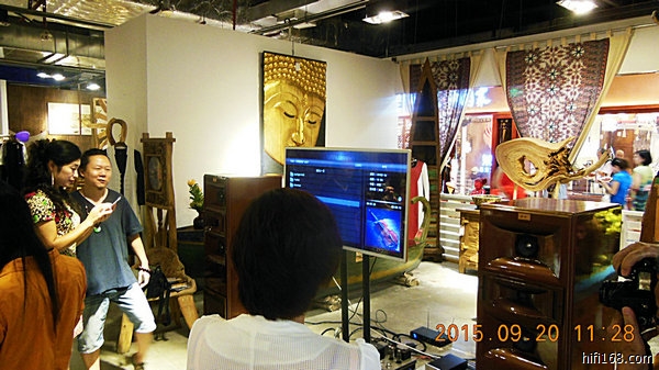 受到太平洋影音公司邀请,用耦合叠加音箱系统在广州购书中心150平方开放书室中,配合小提琴家陈蓉晖女士举办一次CD"伊甸园-2"推介活动.小提琴是不扦电演奏,配乐由音箱系统扩音配合,在这么大开放面积和几十个座位的情况下,只用一台23W 6V6胆机,除小提琴和系统的音色是否搭配外,二者的声压平衡,伴音是否满场也是不容易的.由于去年曾用同样的系统在同样的情况下举办过另一个交流活动,心中有一定把握,所以答应了.器材提早一天到场,由于购书中心的扩散环境很好,在陈蓉晖音乐助手主持下,经过二个小时的摆位,试演,试听,音量调校很快便得满意的效果,全场声压扩散均匀,晚上所有参加聆听,以年轻女士为多的客人,对声音都非常满意,甚至在签售活动时拥抱着陈蓉晖女士感动流泪.系统的表现也受到韩乘光老师和陈蓉晖小提琴家的赞赏.(附去年文化交流的三张图)
