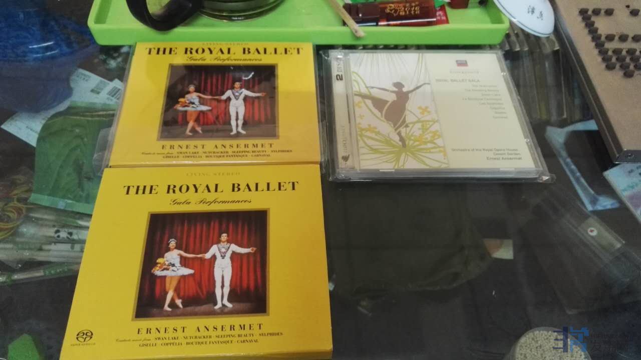 这次音乐沙龙聚会上首先欣赏的第一张是笔者本人在几年前购买的澳大利亚DECCA出品的雄辩系列小双张“皇家芭蕾”,这个版本是澳大利亚迪卡公司再版,欣赏的曲目是胡桃夹子组曲,播放下来感觉音质还不错,此版物有所值,完全感受到了安塞美指挥艺术的油画般的质感,乐队齐奏统一划齐,管乐组、弦乐组、打击乐组、竖琴等各组乐器表现极为优秀,层次丰富。