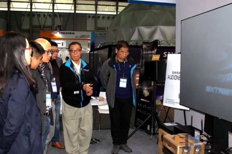 电子报特约记者、高级工程师徐惠民老师在蓝典DTS5.1演示厅给大家演示分享4K蓝光高清视频,并和蓝典公司高层领导就该系统展开了交流讨论,分析了市场竞争优势和未来更多的拓展渠道,徐老师也是这次博览会的规划发起人之一,他多方奔走采访考查国内电子音响制造企业,为博览会制定了一个专业技术和品质监控门槛方案,主持上海国际高科技文化装备产业基地的业务拓展,在行业内有着极大的推广影响力,德高望重。