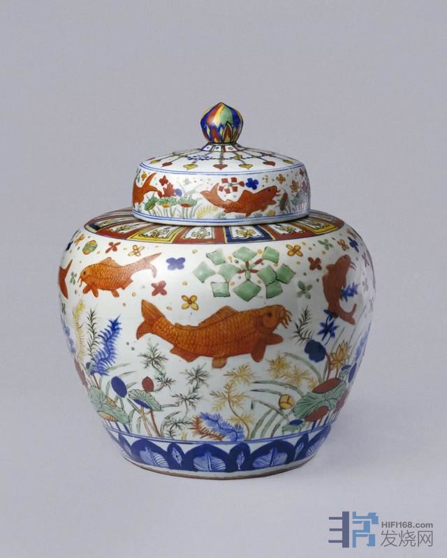 明嘉靖官窑青花五彩瓷器中的名品——五彩鱼藻纹盖罐