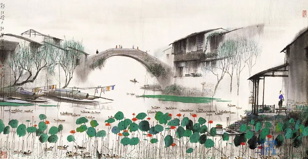 非常漂亮的江南水乡景色画作!