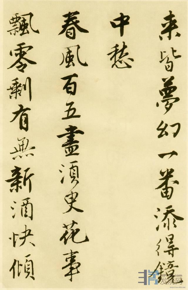 唐寅书法源自赵孟頫一体,风格丰润灵活,俊逸秀拔,代表作《落花诗册》。王世贞在《弇州山人稿》中评议:“伯虎书入吴兴堂庙,差薄弱耳。”依据文献记载和存世作品,他曾泛学赵孟頫、李邕、颜真卿、米芾各家,并在不同时期呈不同侧重,从而形成不断变化的阶段面貌。