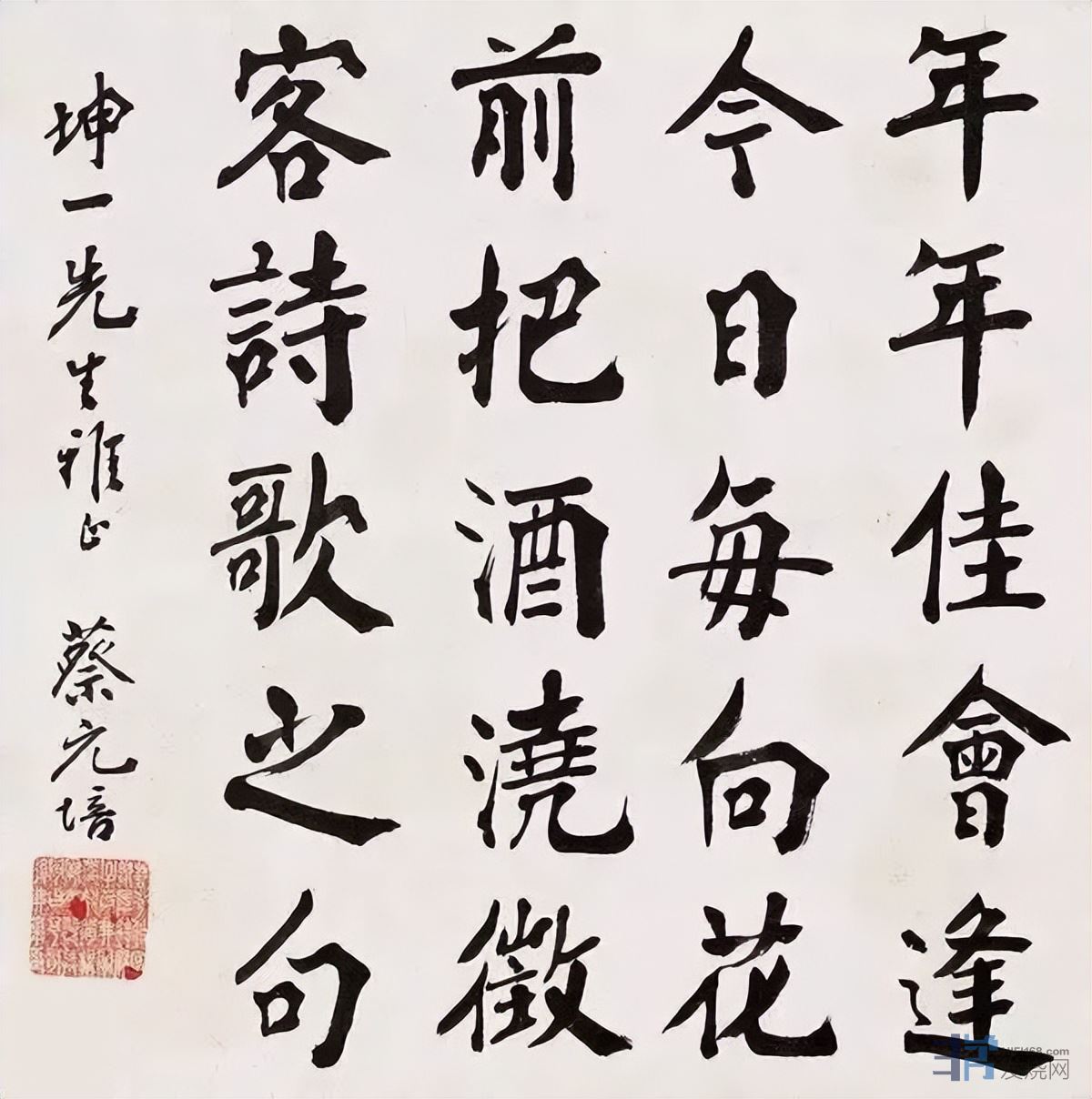 蔡元培先后中秀才,后又相继中举人、进士,文章和书法都受到过严格训练。有专家认为,他的书法一扫清代科举制下书坛的清规戒律,富于节奏感。自出机杼、独具个性。蔡元培是20世纪初新文化运动的导师,现代中国文化名人一面旗帜,他的书作除了艺术价值外,还有很高的历史和文献、文物价值。