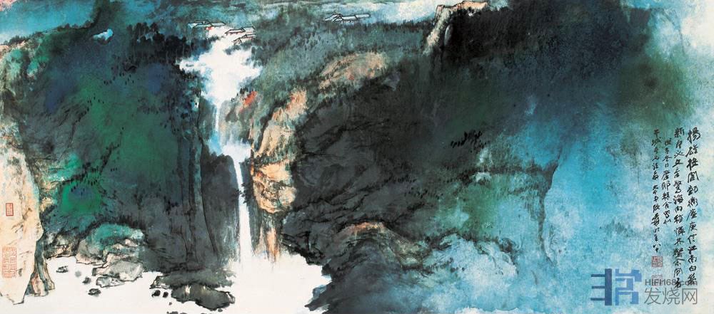 尤其是张大千,他的泼彩山水,其中对青绿中国画颜料的运用,炉火纯青,可见深受王希孟影响。