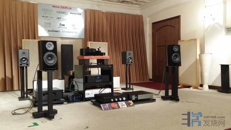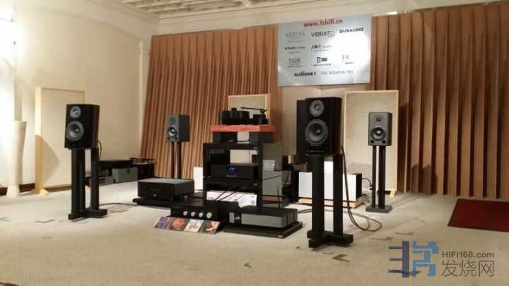 试听是在富盛音响4楼的试音室进行,现场搭配了Audionet的ART G3 CD机(由EPX外置电源供电)、Audionet  SAM G2合并功放。ART G3是Audionet第三代高性能CD播放器,此外它还是一台解码器,它的箱身外壳由无定形的花岗岩、钢铁、铝以及低谐振中纤板构成;转盘采用参考级的CD驱动组件VAU  1254/31LF,模拟电路采用完全直流电解,信号通道中没有电容器,以确保声音的真实性!而SAM G2合并功放采用了Audionet超线性功放技术,功率达到110W/8Ω、200W/4Ω,采用700VA环形变压器,其滤波电容达到达96000μF,并且有自动电源相位调整技术,此外,还有微处理器监控整机的运行状态,确保音箱和其他设备的安全运行。
