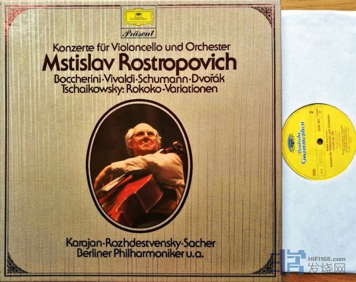 罗斯特罗波维奇 大提琴;卡拉扬、罗日杰文斯基、萨赫 柏林爱乐乐团等。