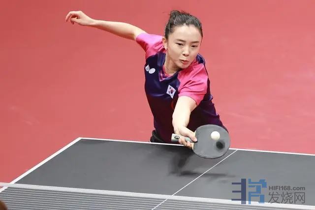 早田希娜在比赛中以3比0战胜韩国队选手申裕彬。
