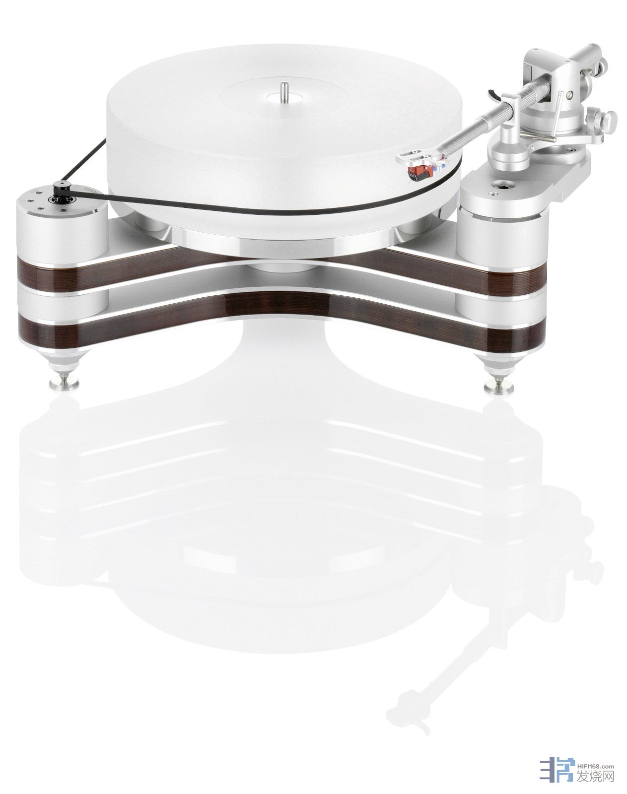 Universal直臂特别的设计还有抗滑部份,别家唱臂用的都是配重锤,Clearaudio跟人家不一样,用的是磁力抗滑,这样完全没有摩擦力,进一步降低唱臂机械结构本身的细微噪音。
