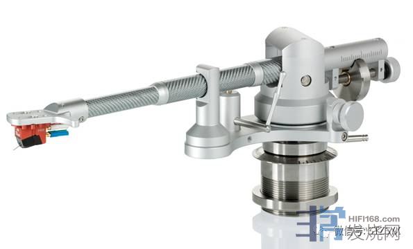 直臂的支轴是设计的重点之一,Universal直臂使用高精密度球形轴承,水平与垂直转轴各一。唱臂重锤设计了四个,而且可随时抽换,如此一来Universal直臂不管遇到很轻的唱头,或者很重的唱头,这四个重锤都能弹性对应搭配。