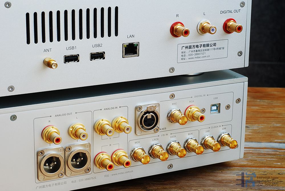MDAC6有一组非常独树一帜的I2S接口。说到数字信号的传输,目前常见的有如下几种:SPDIF(光纤或同轴)、AES/EBU(平衡)、USB和I2S等。究竟哪一种是最为理想的方案?我请教过王工,他说深入研究过所有常见的方案,最后还是认为I2S最理想,从音频的角度来看,它最大的优点是时钟信号有独立的传输线,也就是数据和时钟是分离的。但是I2S原本是作为机器内部的传输协议,对于机器到机器的外部传输目前并没有统一的标准。所以有些厂家使用了网线标准的RJ45接口,也有些厂家使用影音标准的HDMI接口。因为没有统一的协议,因此很多机器的I2S只能搭配自家的器材。这次王工独辟蹊径,在MDAC6上使用了一种非常独特的方式,就是用4个BNC口来传输,让每一种信号都有专用的传输路径,最大限度减少了信号之间的串扰。