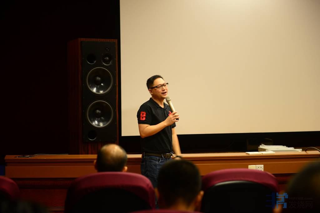 这次聚会所用场地器材同样是感谢力高音响,有请力高音响主理阿杰哥上来简介一下这次搭配的所有器材。音箱:ATC SCM-300新款自带独立单声道功放的主动版大音箱。LP盘:加拿大ORACLE AUDIO高级LP盘。电源处理器:TORUS POWER发烧电源处理器。线材:ZENSATI。影音系统:4K投影机+全景声上下两层采用了24只ATC特制TXH认证高标准环绕音箱+中置+大炮系统。