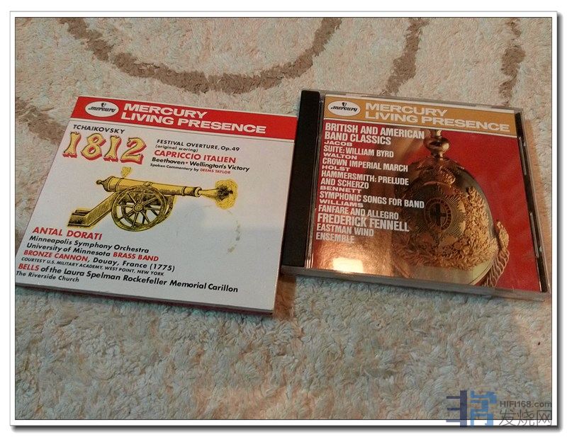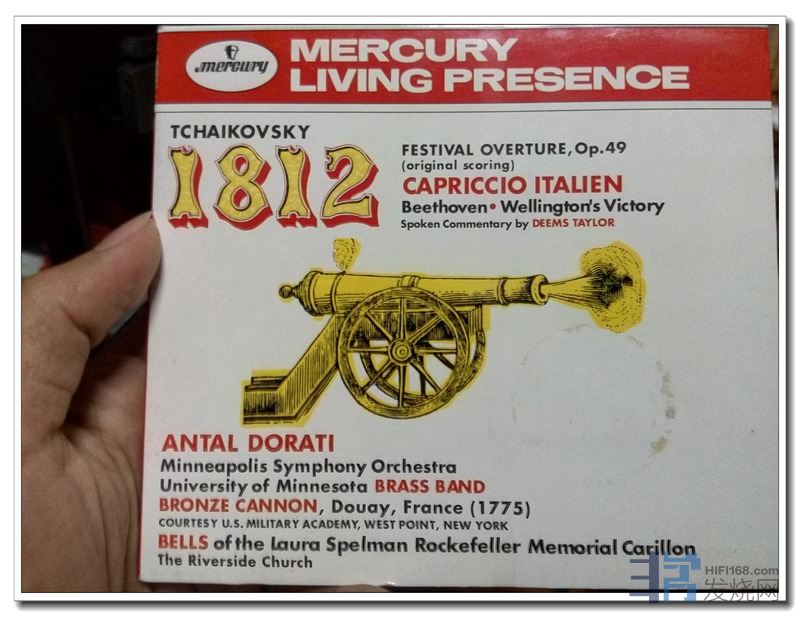 水星1812序曲里的真炮及钟声,以及该曲后的那一段炮声、钟声采样录音讲解,是系统极限的试金石之一了,一般的系统及家居环境不太可能播放得好。不过就作品的歌唱性与艺术性而言,我更喜欢同专辑的意大利随想曲。