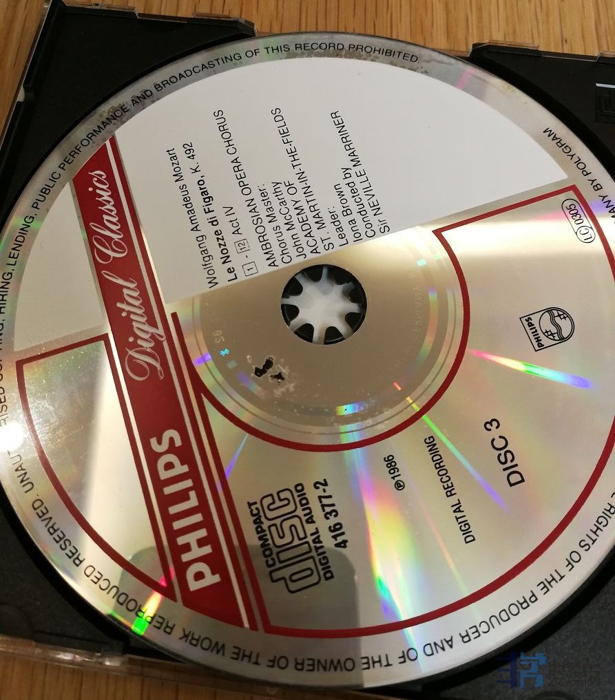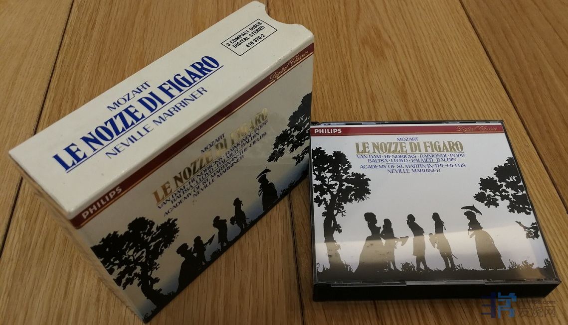 10. PHILIPS 莫扎特歌剧《费加罗的婚礼》3CD  马里纳指挥  西德PDO满银圈  CD1、2有轻微海绵印,CD3印刷面掉银(见照片).播放没有问题。说明书和外盒外好。70元