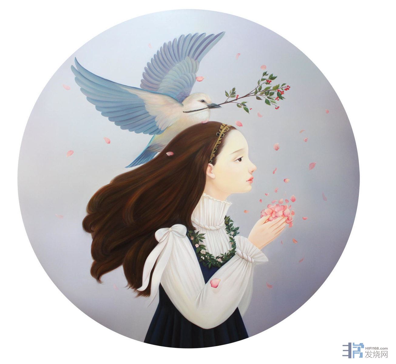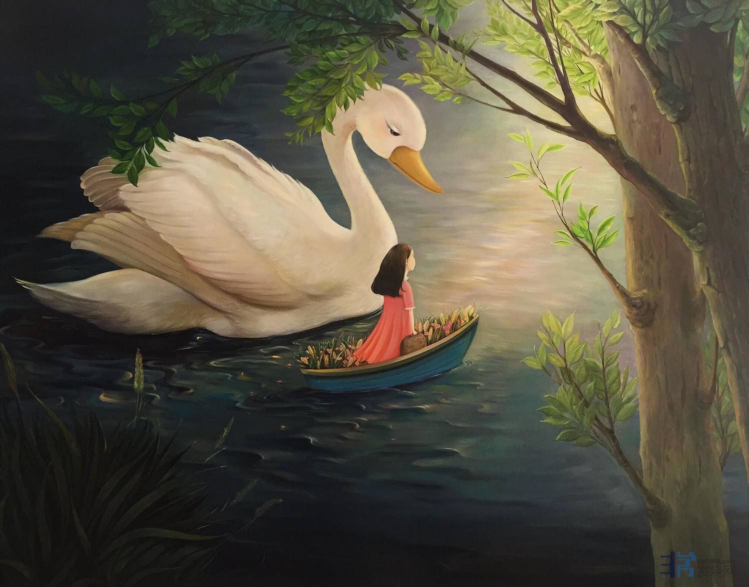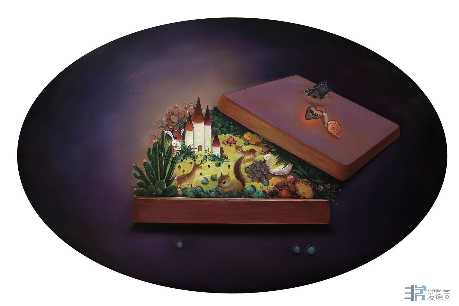 图像和语言从人类的器官功能性上来说,是可以在感情表达上相互转换的,因此,图像叙事和语言叙事具有表达的“交互性”。即两者通过构图和情节来实现对事件的描绘和记录。但是二者的特点却不同:图像,是组合了色彩和形体的“图”进而描述“像”;语言,是由词汇开始的叙述,组成情节来说明事件。孙莹的作品,正是巧妙的融合了二者互文关系,实现了图像的叙事功能的同时,也体现了绘画语言的叙事特点。通过自己的画笔,把她向往和感受到的青春世界描绘于画布上,而她笔下的童话世界是来源于成长中内心深处的记忆。